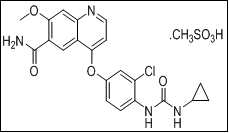 產品名稱:4-[3-氯-4-(環(huán)丙基氨基羰基)氨基苯氧基]-7-甲氧基-6-喹啉甲酰胺 甲磺酸鹽